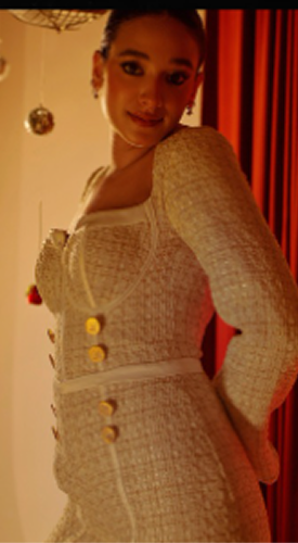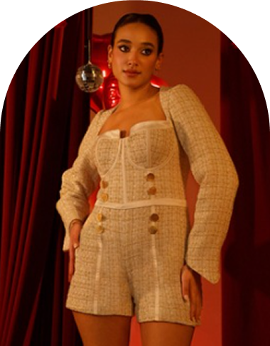 Ease is a white tweed corset romper crafted with effortless sophistication. The structured corset bodice sculpts the silhouette, offering support and definition. Soft tweed texture adds warmth and depth while maintaining a clean, refined look. The tailored shorts introduce freedom of movement and modern ease. Balanced between structure and softness, the piece feels light yet confident. Designed for moments that call for comfort without compromise.